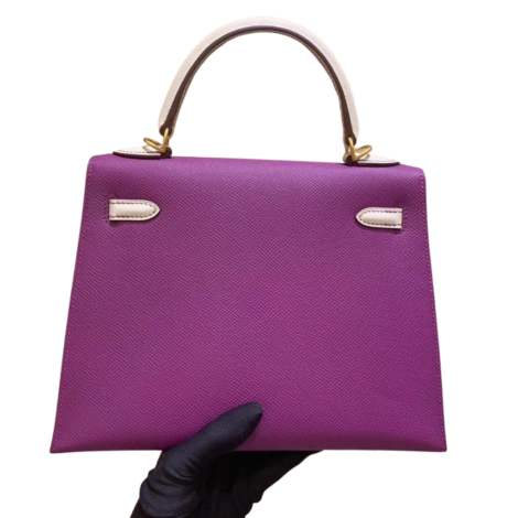 HERMÈS Kelly 25 Sellier Handbag in Anemone Epsom Leather with Gold Hardware