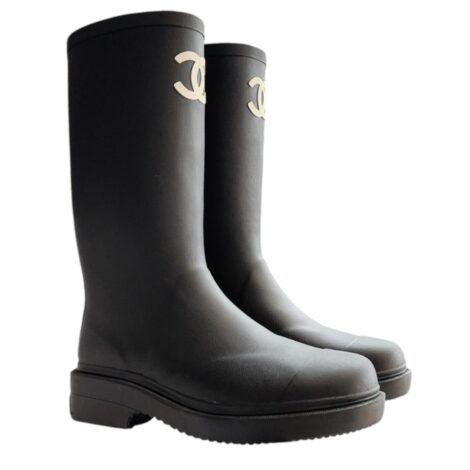 Chanel CC Logo Rubber Rain Boots in Black