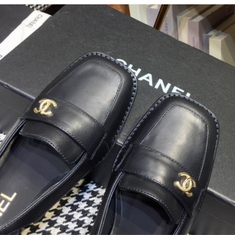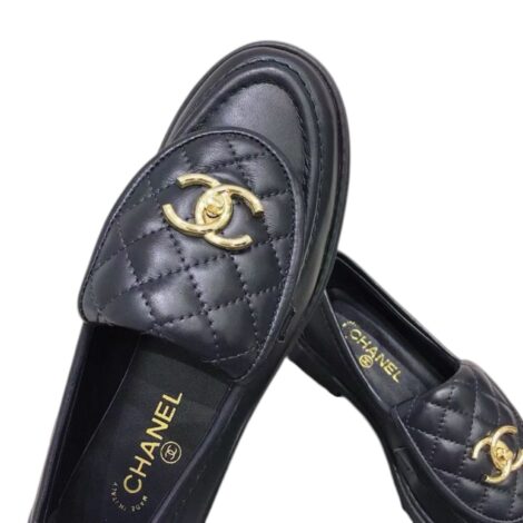 Chanel Quilted Leather Loafers in Black with Gold CC Logo