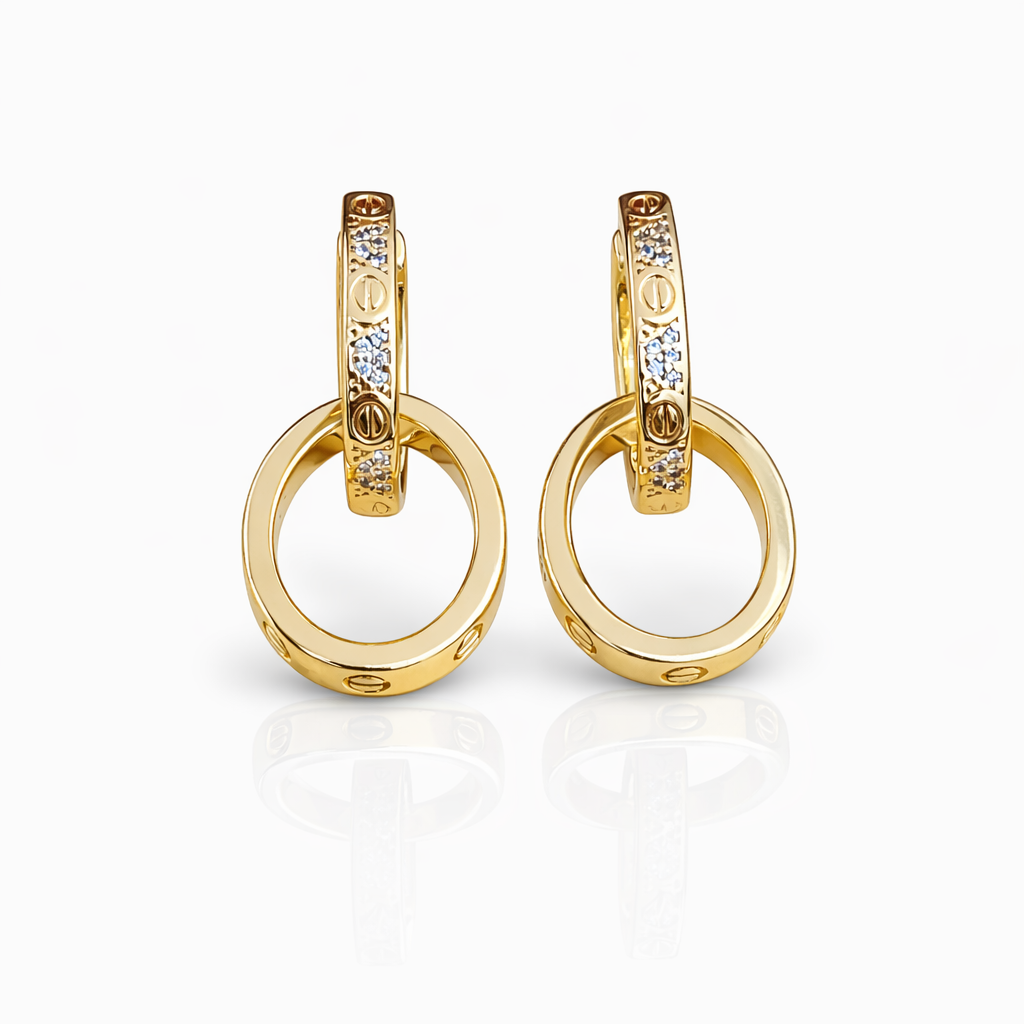 These elegant Cartier Love hoop earrings are crafted from polished yellow gold and feature the iconic Love screw motif, accented with brilliant-cut diamonds set along the front of each hoop. Designed with a hinged closure and a detachable circular drop, this refined pair blends Cartier’s signature symbolism with timeless sophistication, making them suitable for both everyday wear and special occasions.