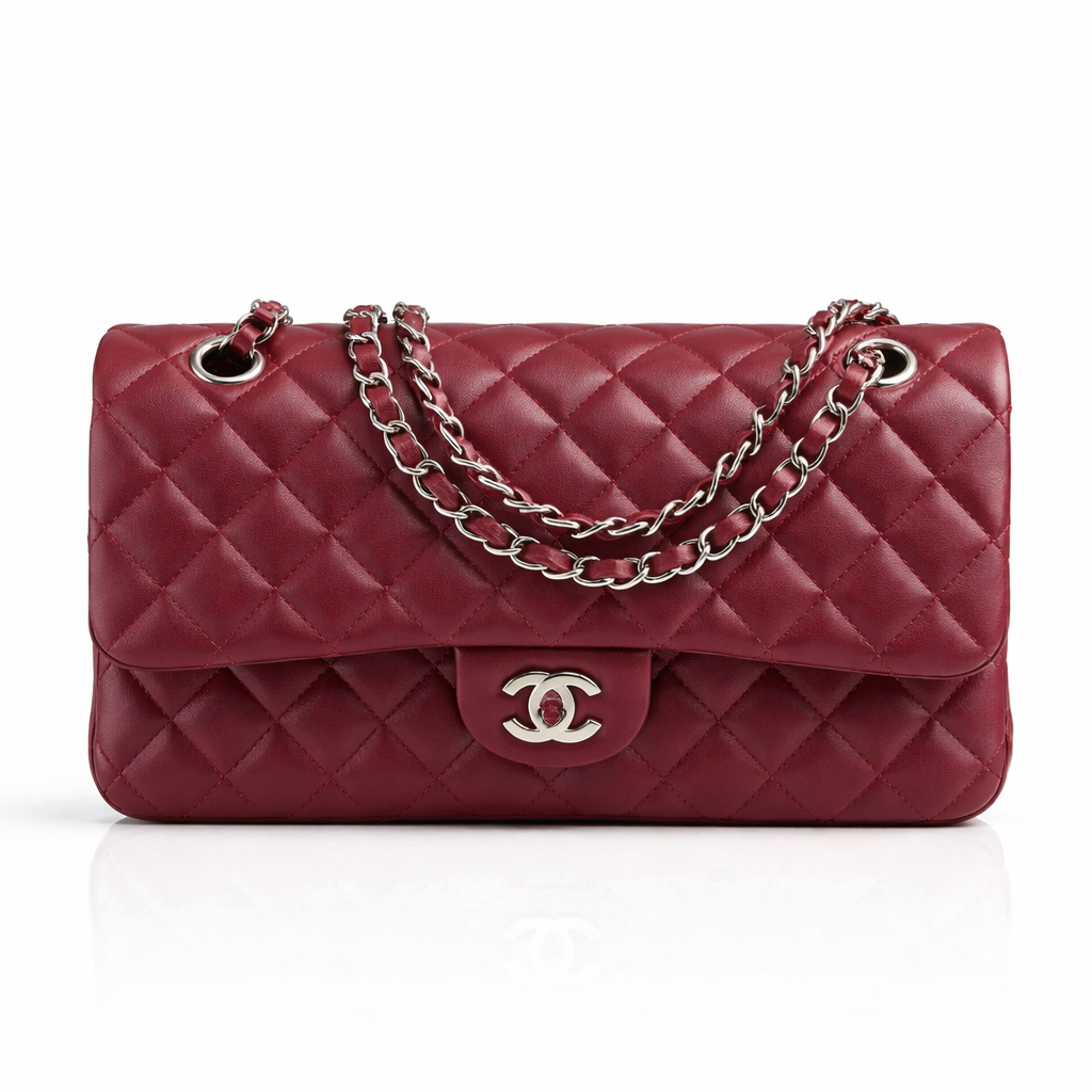 Be the first to review “Chanel Classic Flap Bag in Burgundy Quilted Leather with Silver Hardware”