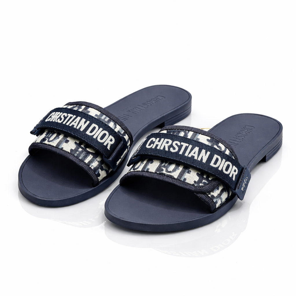 Christian Dior Dway Slide Sandals in Navy Blue Dior Oblique Jacquard