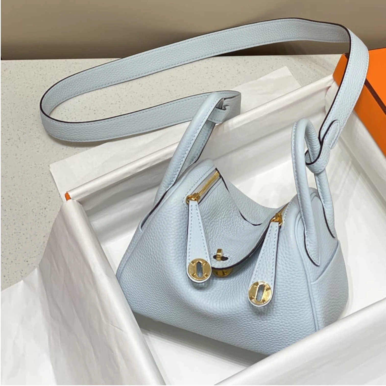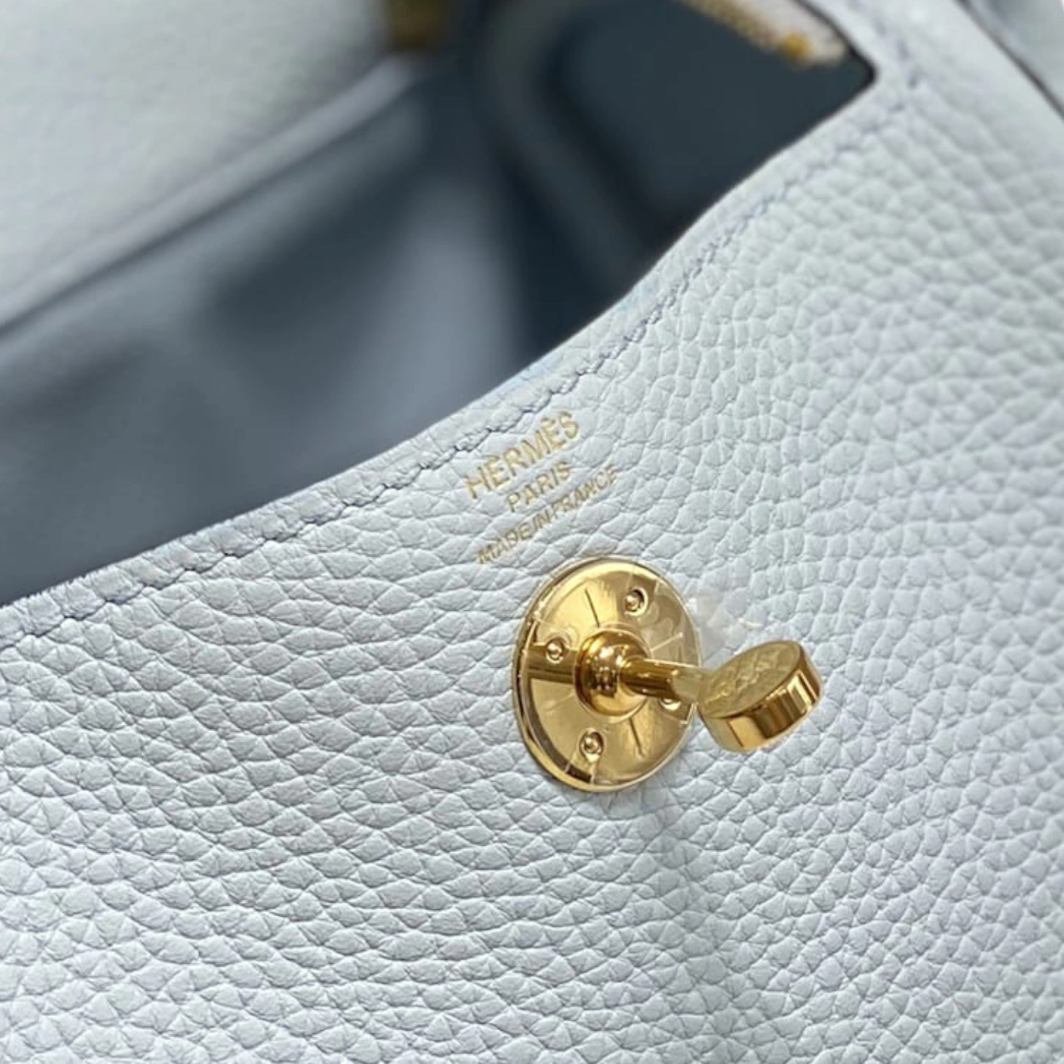 This elegant Hermès Lindy 26 is crafted in bleu glacier clemence leather, showcasing the bag’s signature soft, relaxed silhouette with dual top handles and an adjustable shoulder strap for versatile wear. The design features iconic gold-tone hardware including twin zip pulls and distinctive side turnlock closures that allow the bag to expand or compress based on your needs. This practical yet sophisticated style combines Hermès’ exceptional craftsmanship with contemporary functionality, making it a highly coveted addition to any collection.