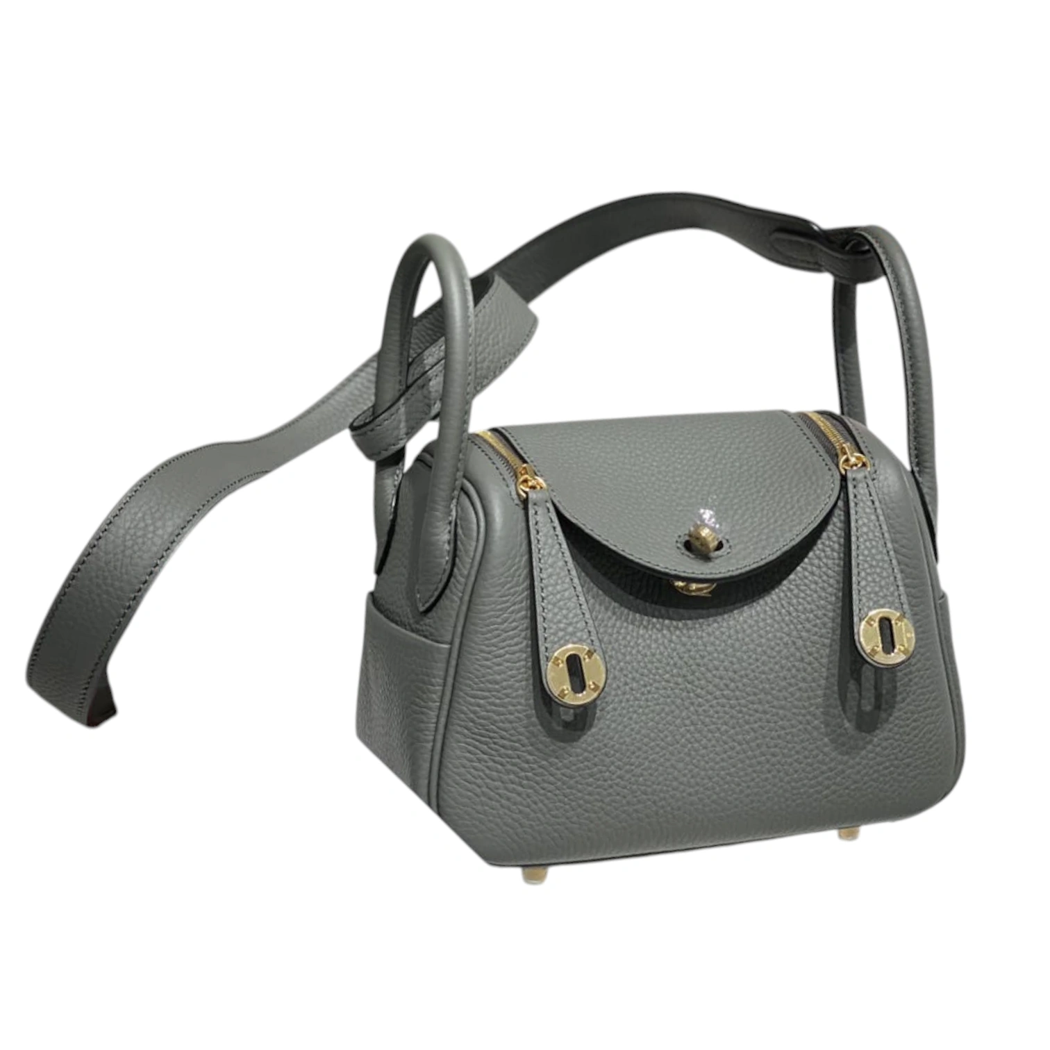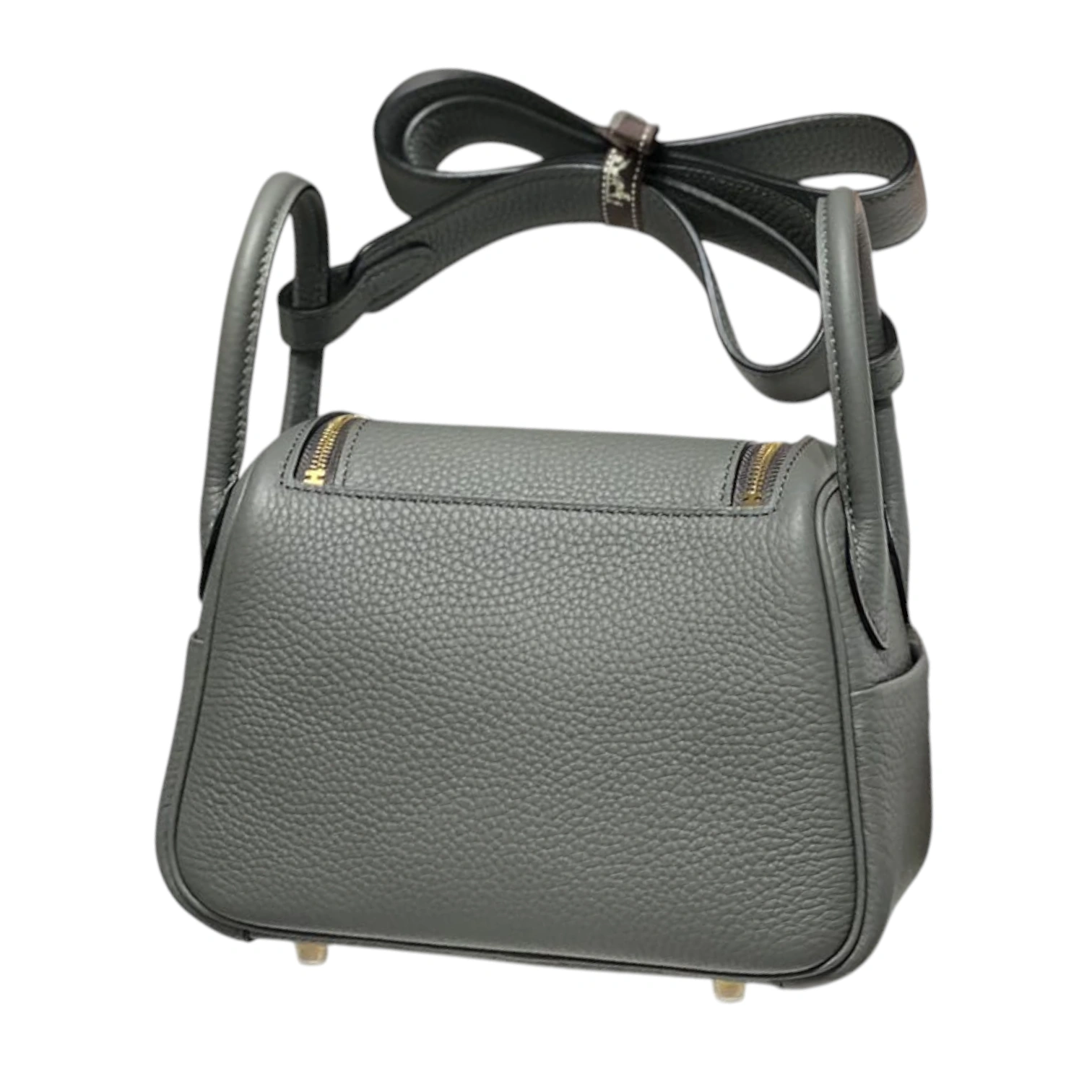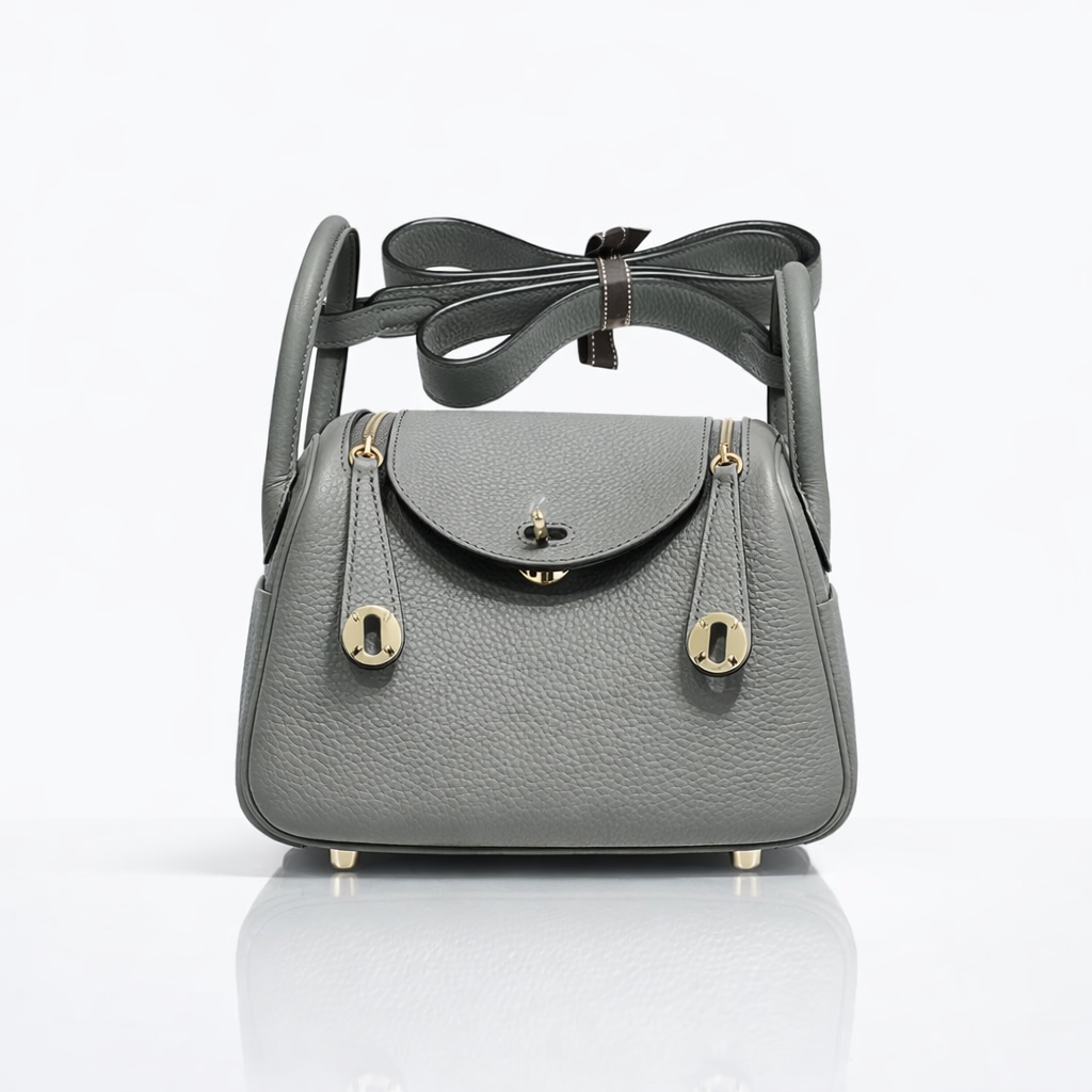 This coveted Hermès Lindy Mini is crafted in etain grey clemence leather, featuring the bag’s distinctive supple silhouette with dual top handles and an adjustable shoulder strap. The design showcases signature gold-tone hardware including the iconic twin zip pulls and turnlock closure, with side gussets that allow the bag to expand for added functionality. This compact yet practical style exemplifies Hermès’ innovative craftsmanship and has become one of the house’s most sought-after contemporary designs.