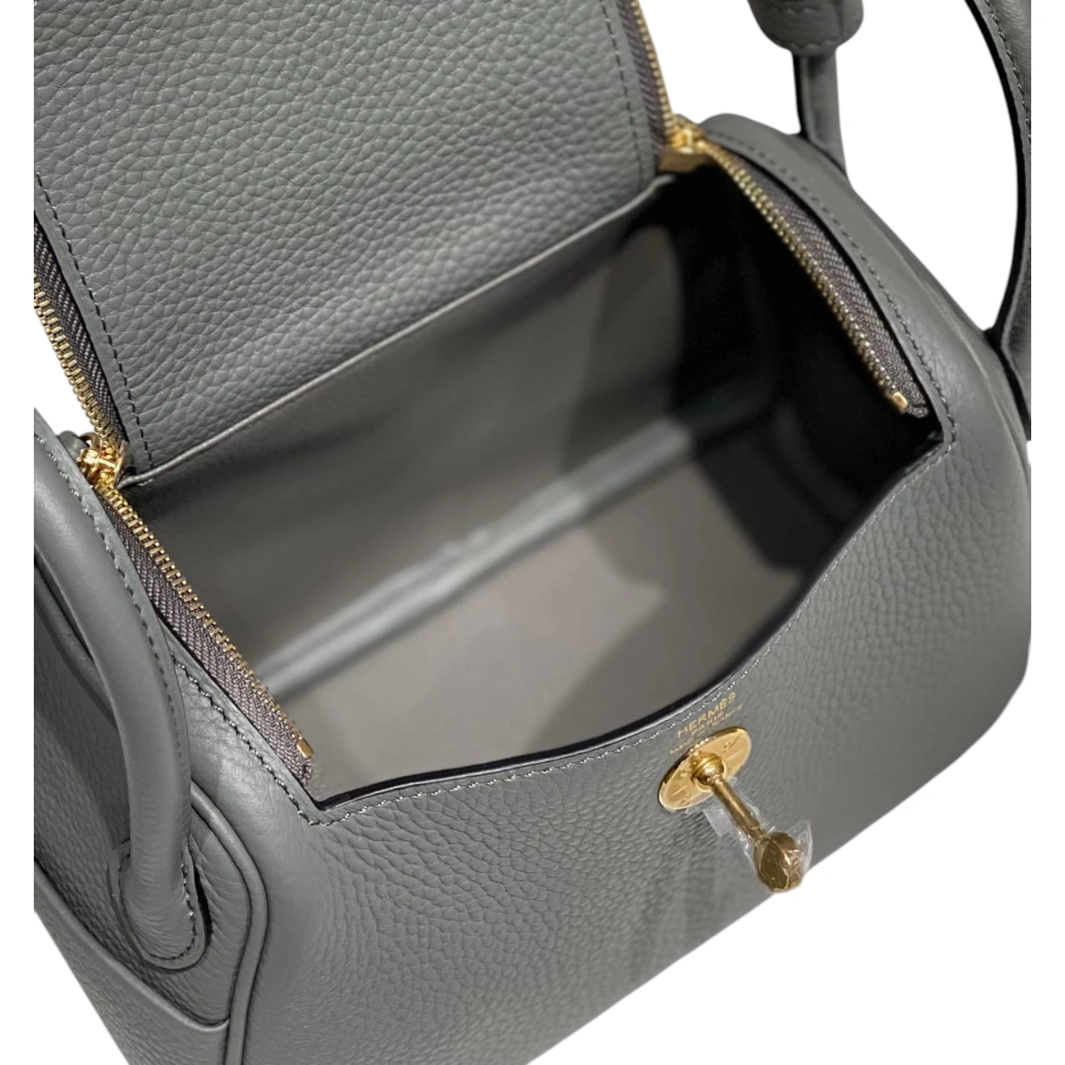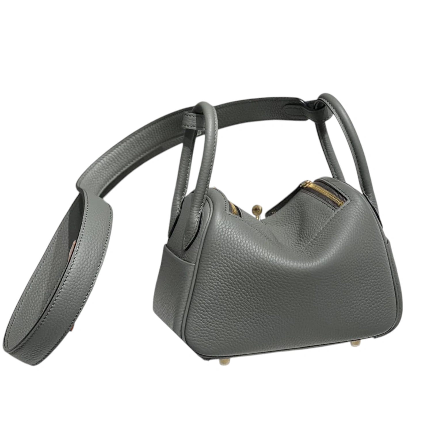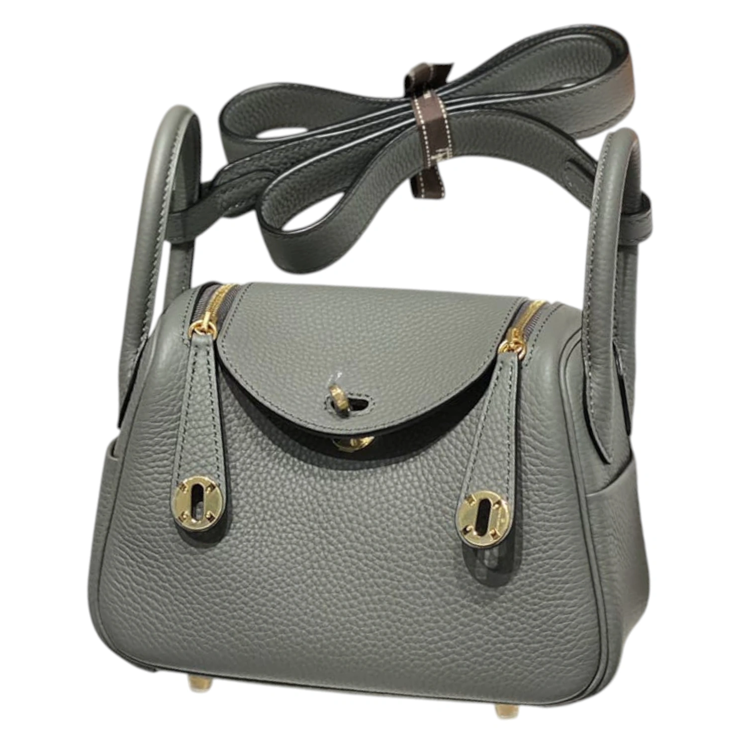 This coveted Hermès Lindy Mini is crafted in etain grey clemence leather, featuring the bag’s distinctive supple silhouette with dual top handles and an adjustable shoulder strap. The design showcases signature gold-tone hardware including the iconic twin zip pulls and turnlock closure, with side gussets that allow the bag to expand for added functionality. This compact yet practical style exemplifies Hermès’ innovative craftsmanship and has become one of the house’s most sought-after contemporary designs.