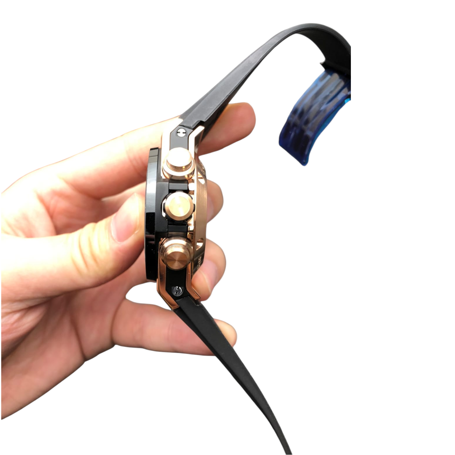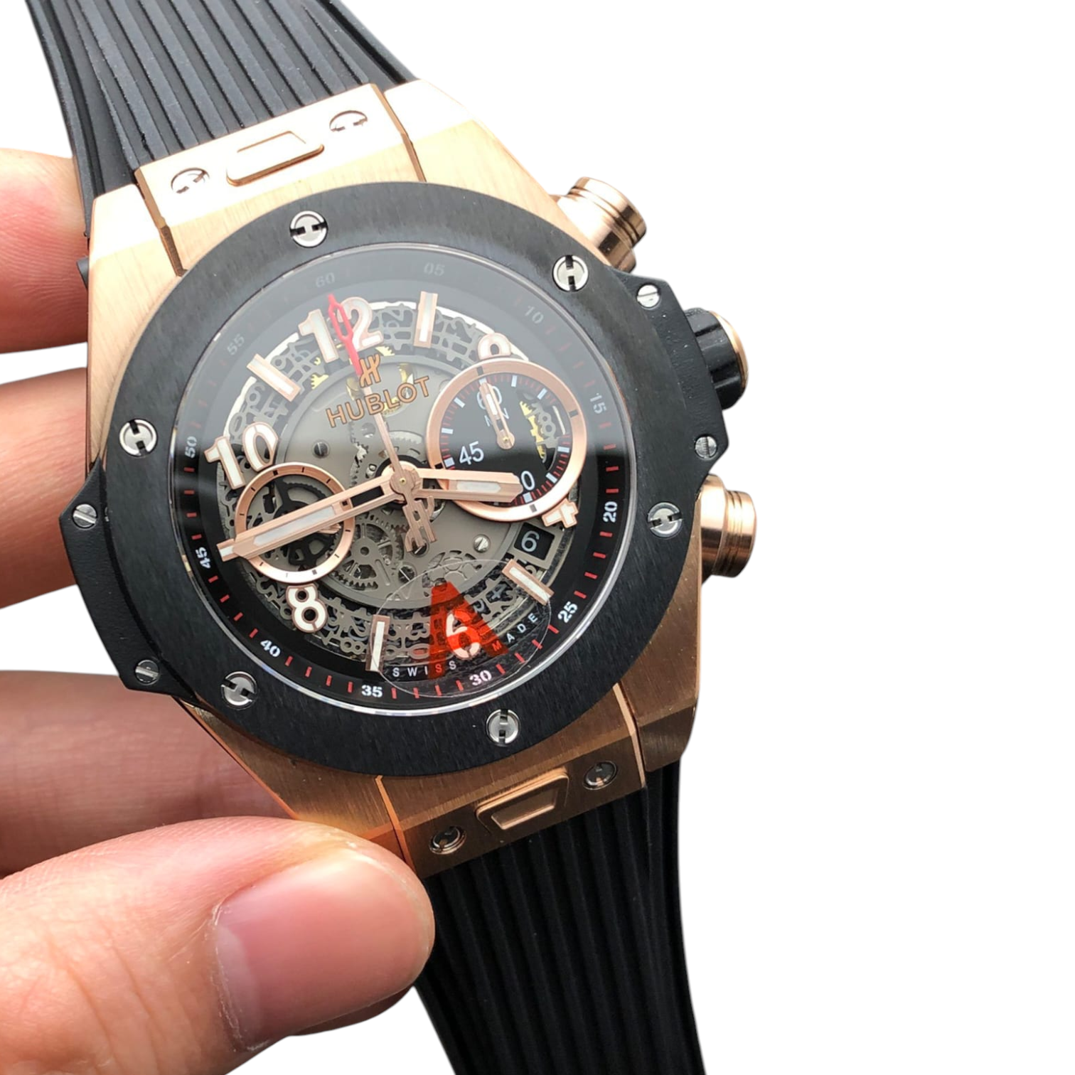• Dial color: Skeletonized grey with black and rose gold accents