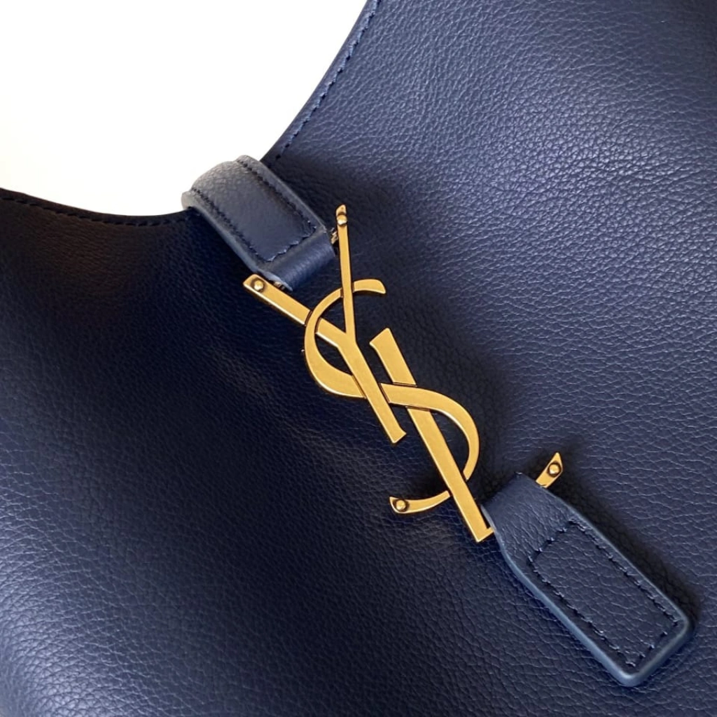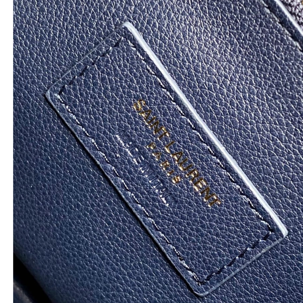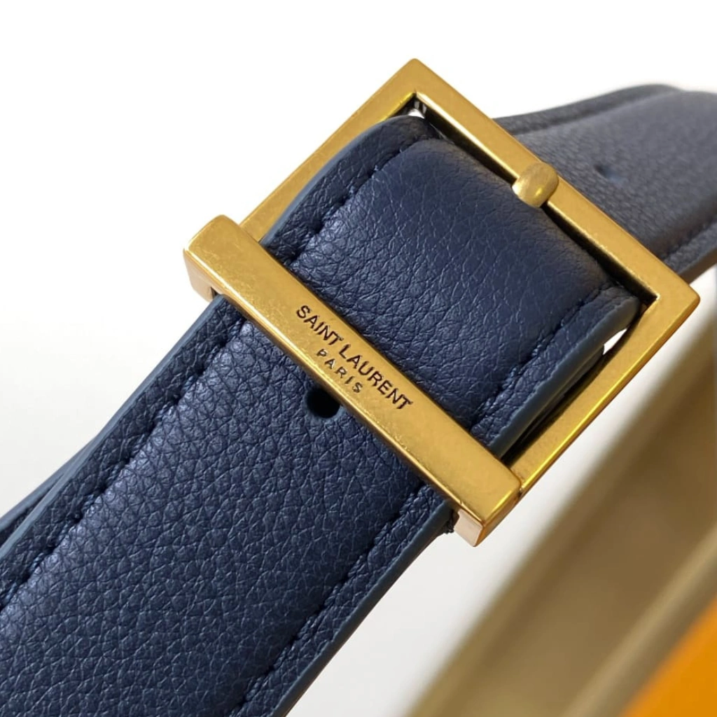 Meticulously crafted in Italy from supple grained calfskin leather in a rich navy blue hue, this Saint Laurent Le 5 à 7 Supple Large Shoulder Bag embodies relaxed sophistication with modern edge. The softly structured silhouette is accented by the signature YSL Cassandre logo in gold-tone hardware at the front tab closure, paired with a slender adjustable leather shoulder strap for effortless wear. Designed for everyday versatility, the generously sized interior offers ample space while maintaining the House’s refined, minimalist aesthetic.