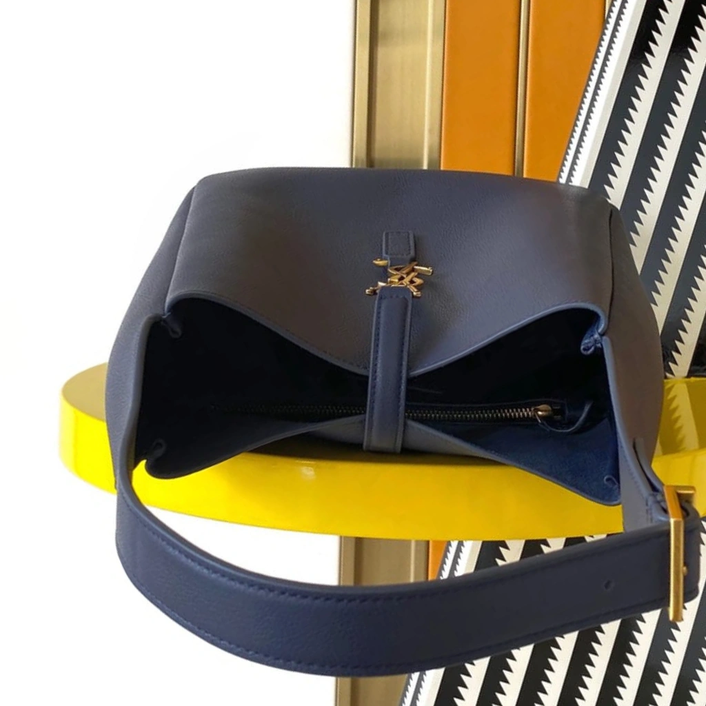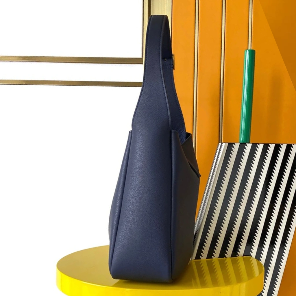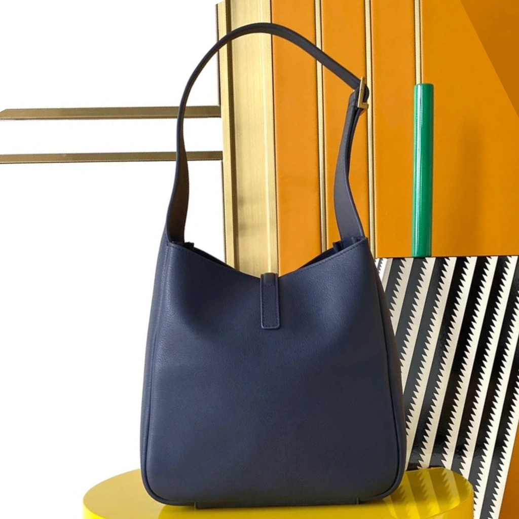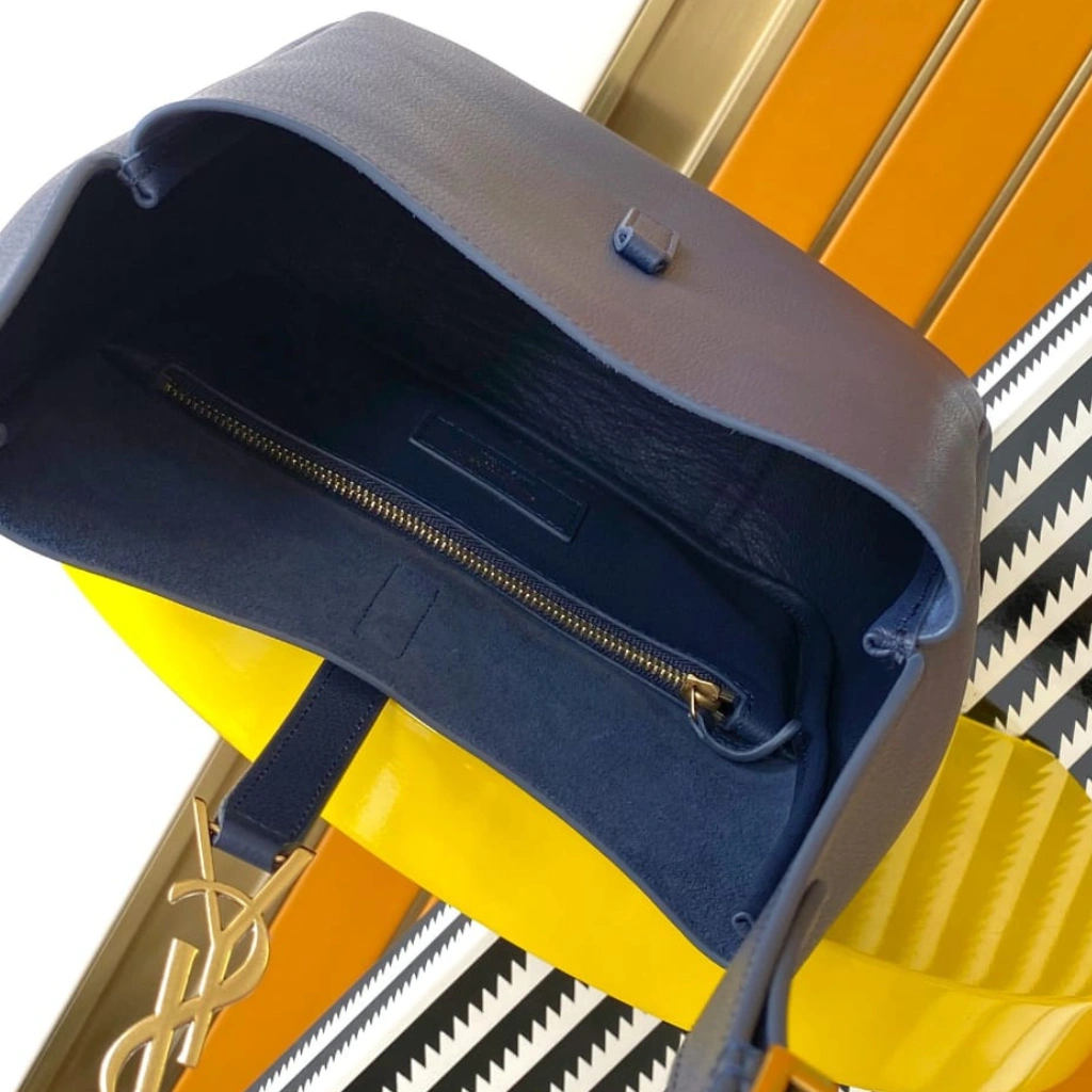 Meticulously crafted in Italy from supple grained calfskin leather in a rich navy blue hue, this Saint Laurent Le 5 à 7 Supple Large Shoulder Bag embodies relaxed sophistication with modern edge. The softly structured silhouette is accented by the signature YSL Cassandre logo in gold-tone hardware at the front tab closure, paired with a slender adjustable leather shoulder strap for effortless wear. Designed for everyday versatility, the generously sized interior offers ample space while maintaining the House’s refined, minimalist aesthetic.