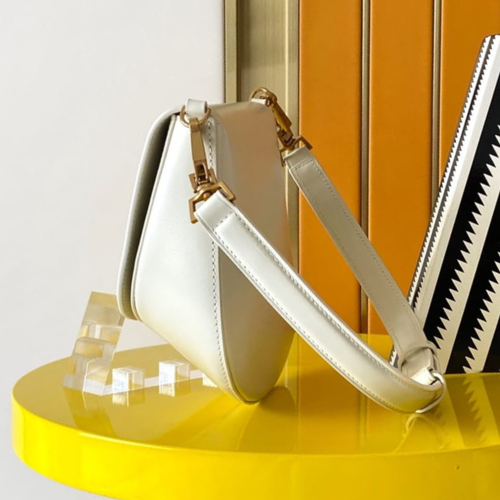 Meticulously crafted in Italy from smooth, structured Box Saint Laurent leather, this Mini Voltaire Top Handle bag exemplifies the House’s refined, modern elegance. The softly rounded silhouette is accented by the iconic gold-tone YSL Cassandre logo on the front flap, complemented by a removable top handle and polished hardware for a sophisticated finish. Designed to transition seamlessly from day to evening, this compact piece offers timeless Saint Laurent style with understated luxury appeal.